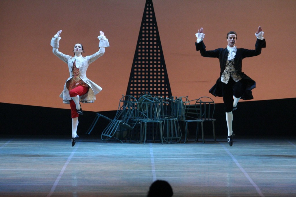 Paralēli izsmalcinātajām Versaļas ainām norisinās arī mūsdienu Dārznieku skarbā sižeta līnija, kas periodiski parādās visa baleta garumā, lemjot galveno varoņu likteni. Viņu iznācienus pavada elektroniskā mūzika, bet deja veidota uz stūrainām diskotēkas kustībām ar breikdansa elementiem.