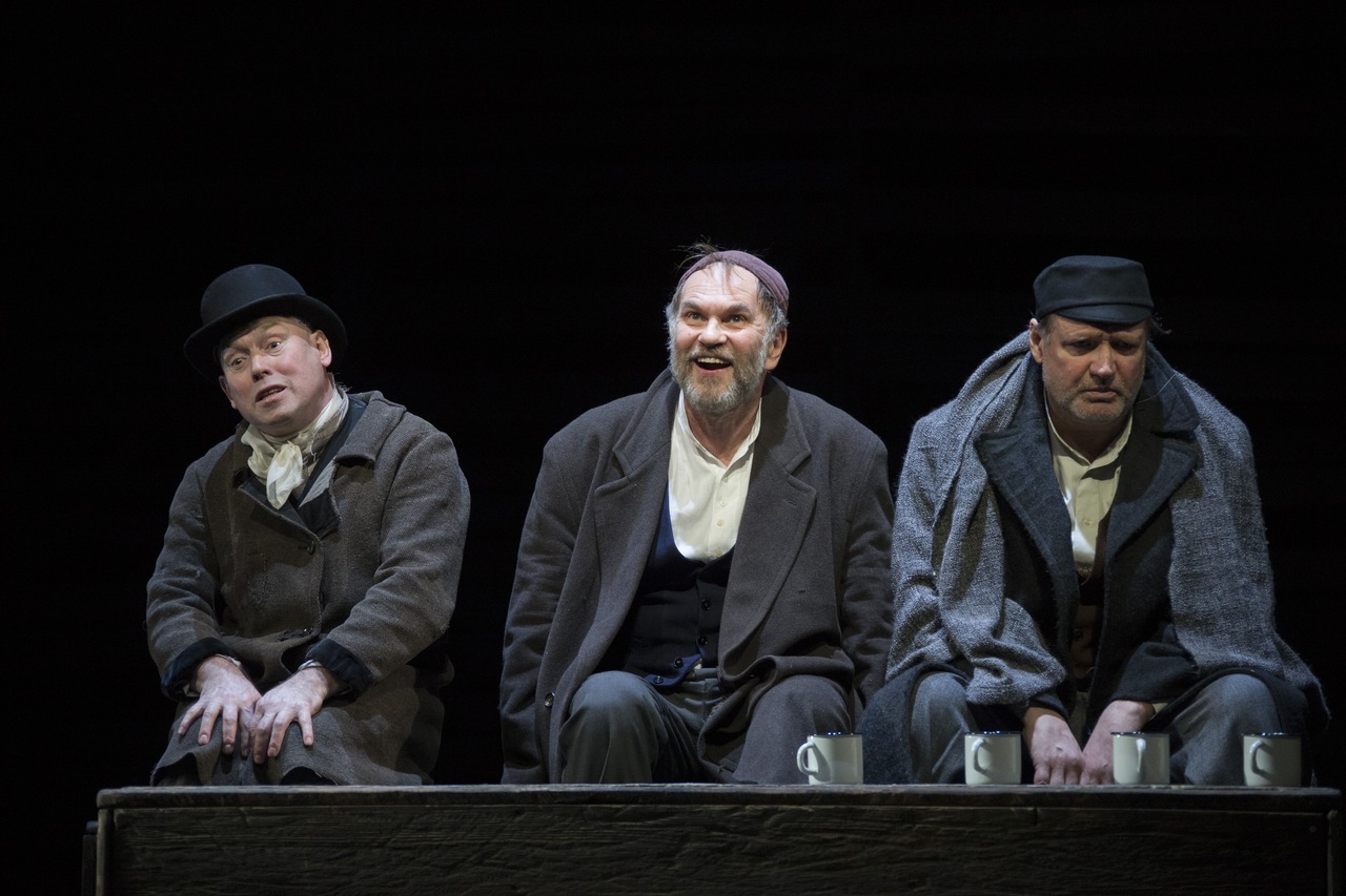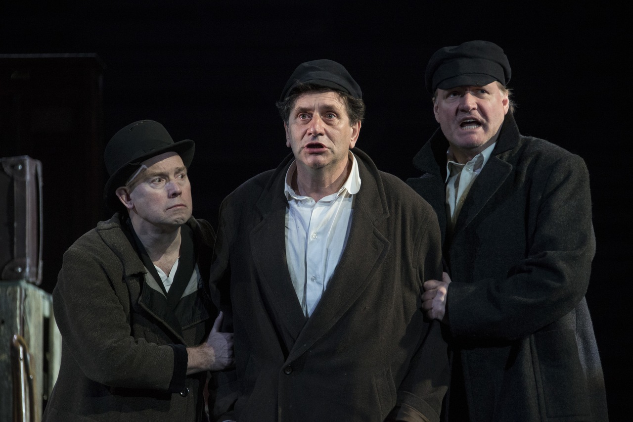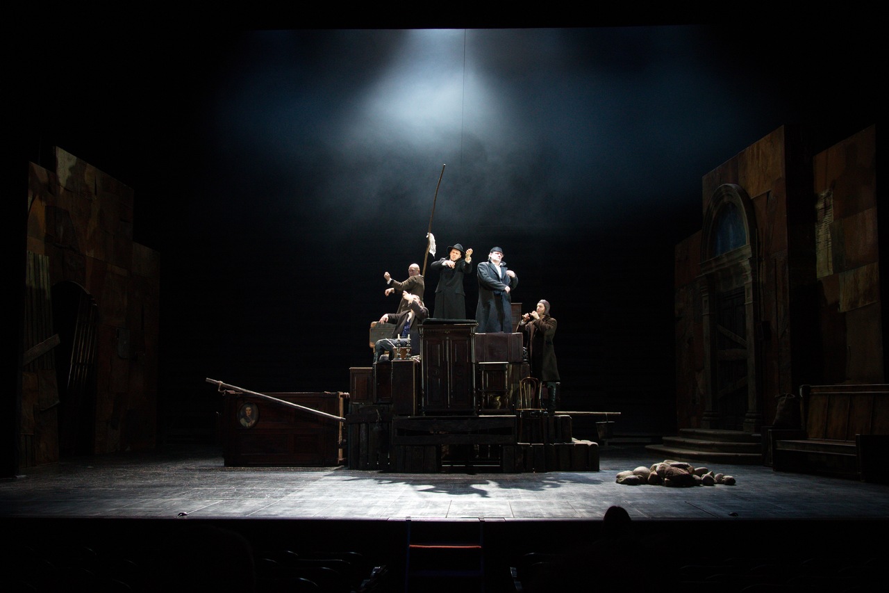 Kā siena stāv raudas, kliedzieni, šāvieni. Lido akmeņi, monētas, graudi. Metaforu valodā tiek izstāstīta ne tautas, bet Cilvēka drāma. Tas nav pesimisms, skaidro aktieri, - tā ir filozofija, pārdomas par esību.
