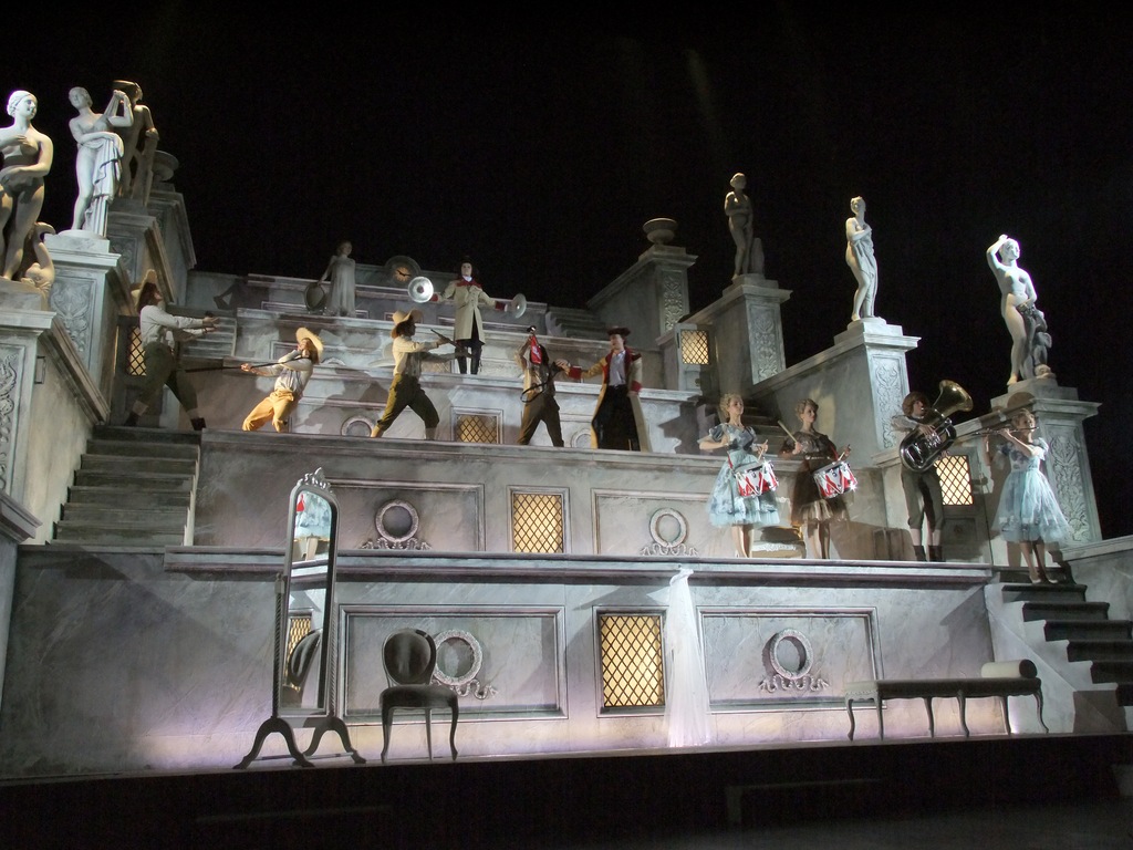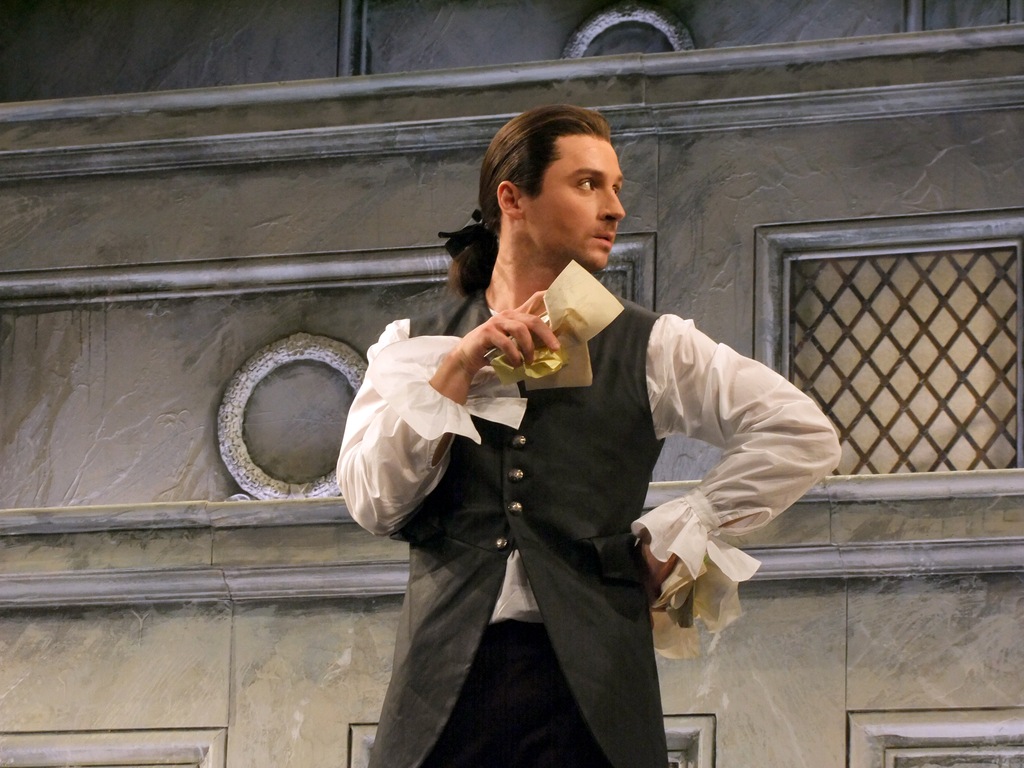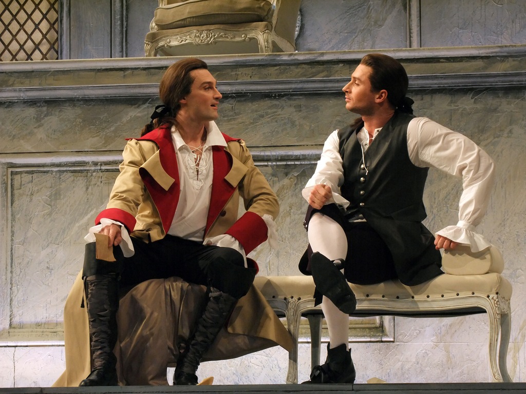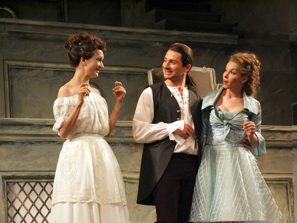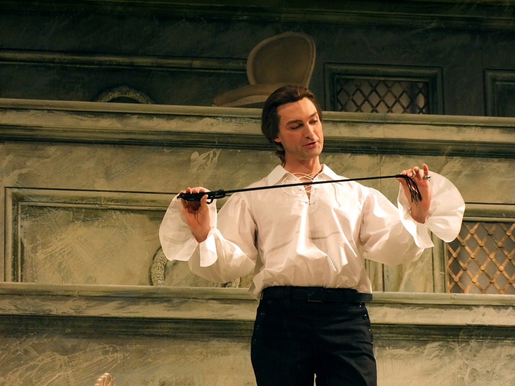 Спектакль худрука театра Евгения Писарева — зрелище и впрямь искристое, игривое, фривольное, лихое, яркое, стремительное. Но и подробное (спектакль идет три часа), осмысленное, умное. Роскошные костюмы не затмевают тончайшей огранки, ажурной отделки в актерском рисунке Александра Арсентьева (граф) и Виктории Исаковой (графиня), Сергея Лазарева (Фигаро) и Александры Урсуляк (Сюзанна). А веселый сценический кавардак с пятью этажами декораций и пятью пудами любви, альковными интригами, ревностью, тайными поцелуями, переодеваниями мужчин в женские платья и тому подобными комедийными шалостями не мешает сегодняшним зрителям расслышать актуальное содержание пьесы, написанной Бомарше в 1778 году.